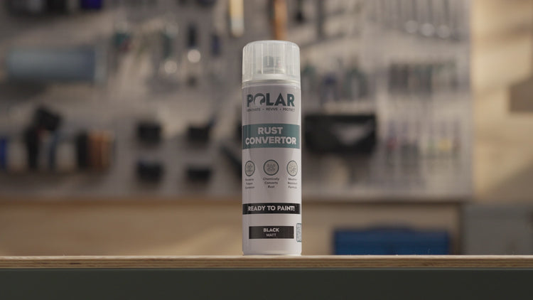 Stop rust at the source with Polar Rust Converter, a powerful treatment that chemically transforms rusted metal into a stable, protective matt black surface. Designed to simplify rust repair, it reduces the need for heavy wire brushing while helping prevent corrosion from returning.