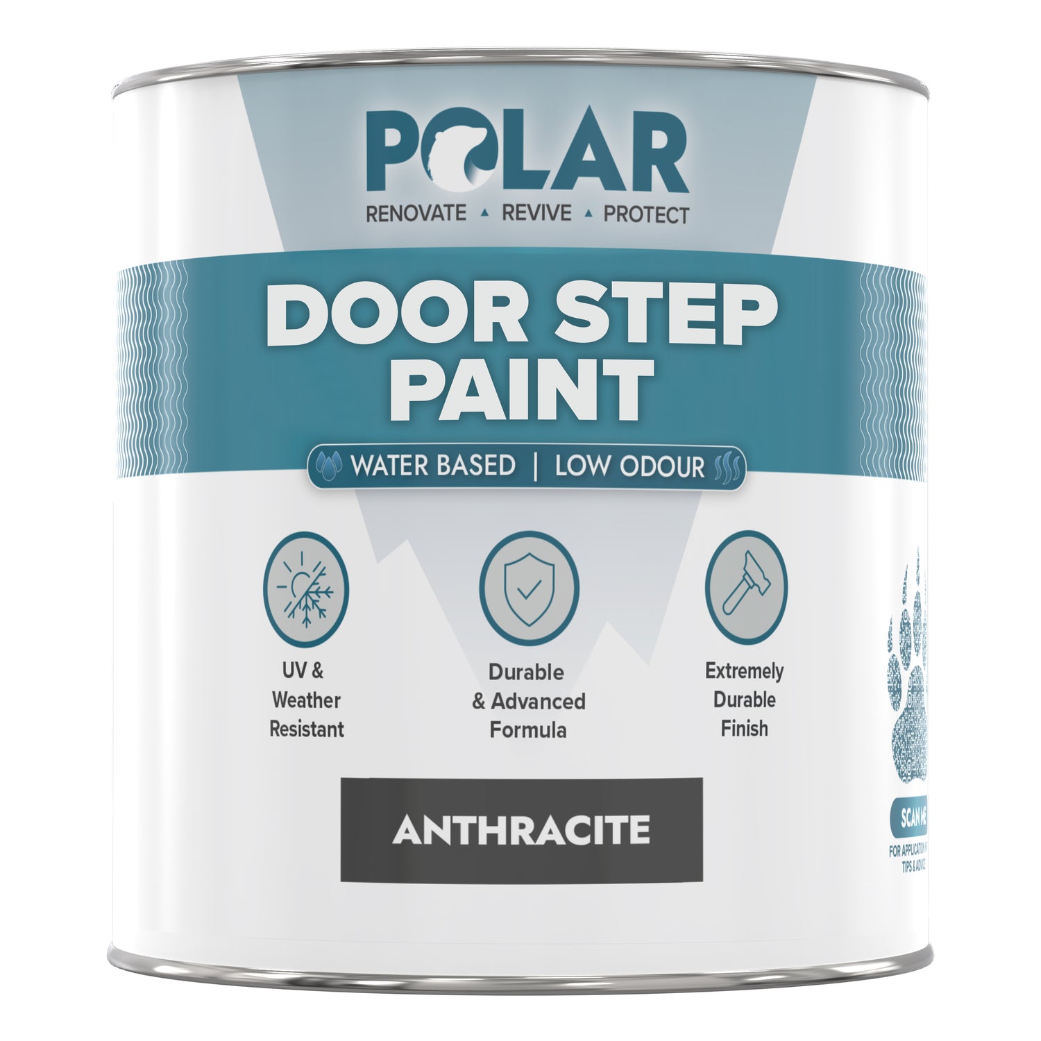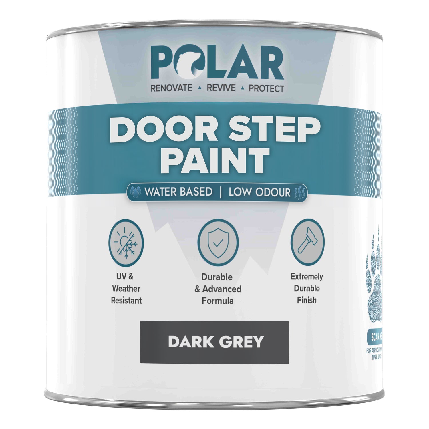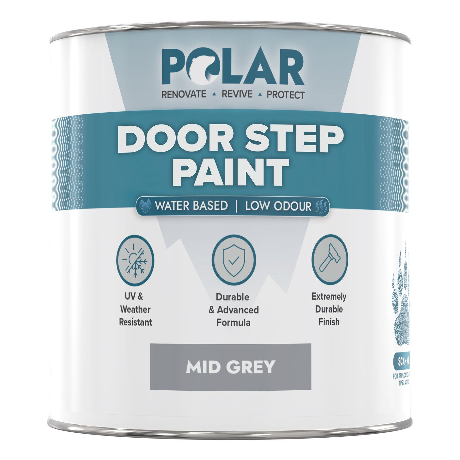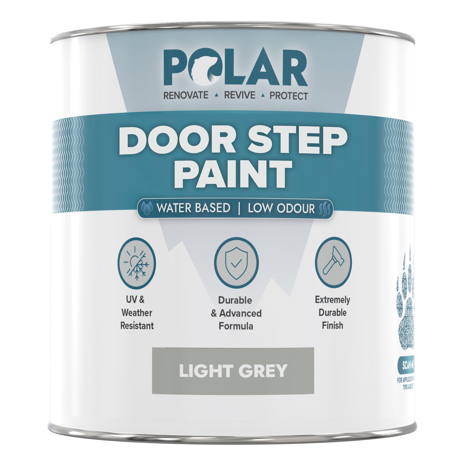 Long-Lasting Protection: Polar Doorstep Paint revitalises and protects small exterior masonry areas and steps. Specially formulated for heavy foot traffic, it shields against dirt, scuffs, and the elements, ensuring a durable, polished finish.