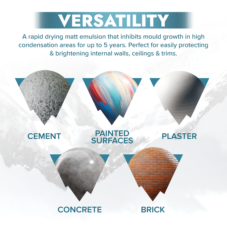 Multi-Surface Compatibility: Our mould-resistant sealer resists mould in high-condensation areas. Suitable for brick, concrete, plaster, wood, and metal surfaces, it provides strong protection against moisture and humidity. Ideal for kitchens, bathrooms, and basements, it enhances your home's look while reducing mould-related damage. Note: Not suitable for use on metal surfaces.