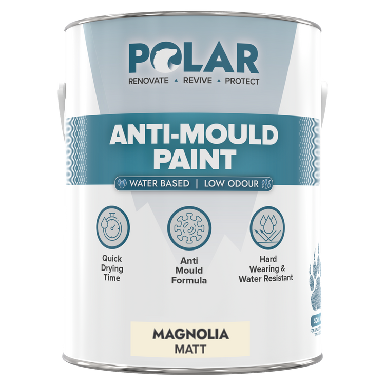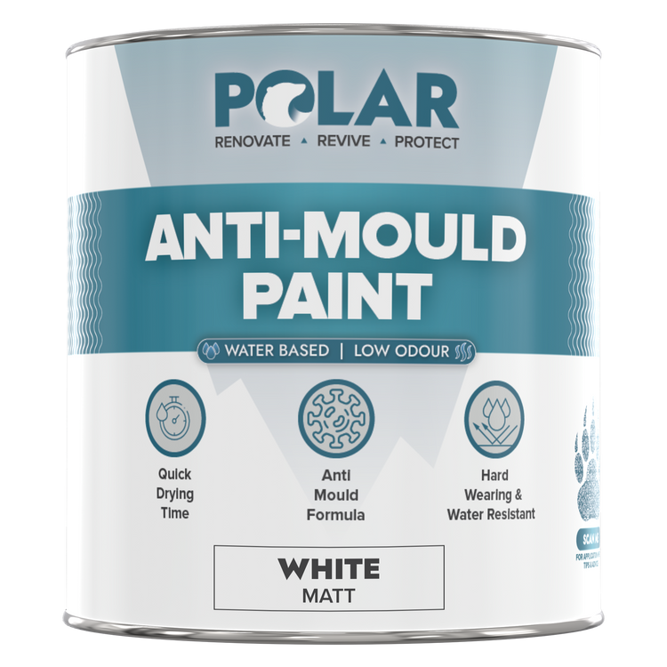 Polar anti-mould paint is specifically designed to prevent mould from penetrating interior walls and ceilings.