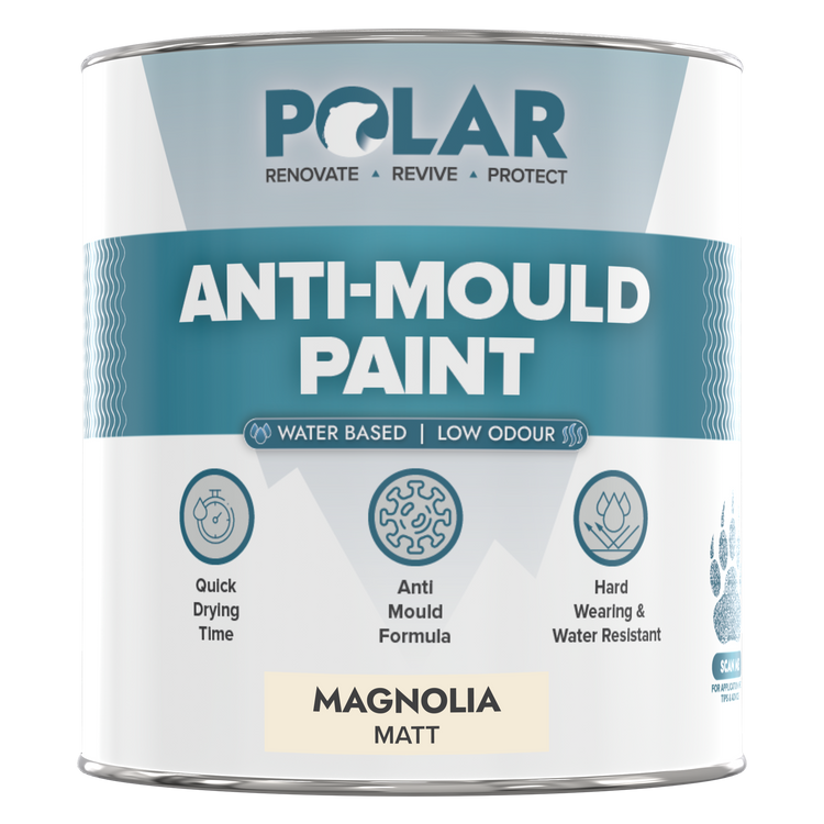 Polar anti-mould paint is specifically designed to prevent mould from penetrating interior walls and ceilings.